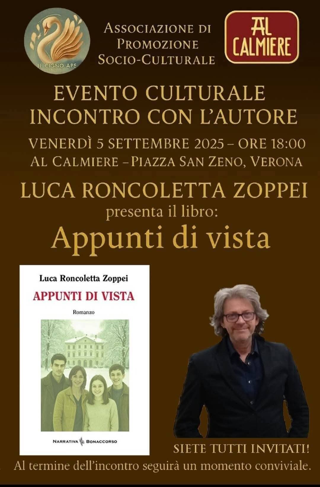 L' autore incontrerà amici e lettori presso la Sala Espositiva Comunale Birolli a Verona.